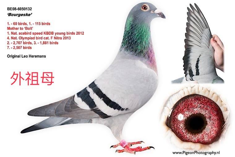 同窩姐妹作出2011年LCB 全國幼鴿鴿王冠軍.2012年歐洲杯全國鴿王季軍.2011年KBDB全國速度鴿王4位
